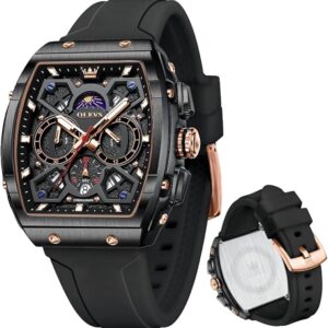 • 【Fashion Square Men Watches】: The men's watch features a comfortable and soft silicone strap. The imported quartz movement ensures accurate and stable timekeeping. The high-hardness mineral glass mirror surface ensures durability and meets a variety of daily needs.