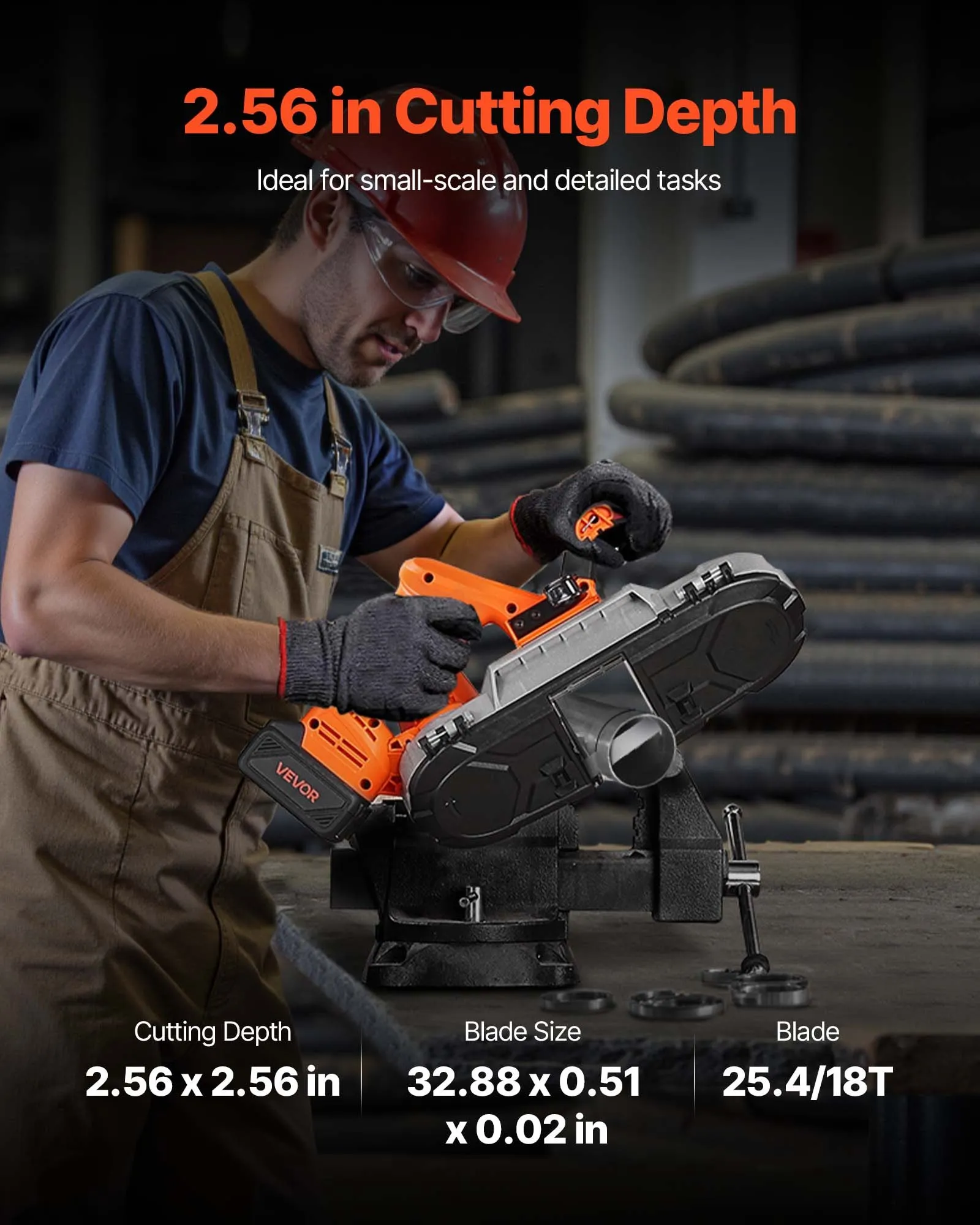 - Up to 2.56 in Cutting Depth: This portable band saw fits for small, precise cutting tasks. Equipped with a 25.4/18 T blade, it efficiently cuts up to 2.56 x 2.56 in (65 x 65 mm), making it ideal for handling smaller workpieces with ease