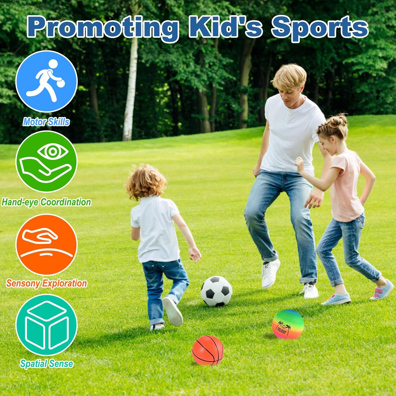 - 【Perfect Gift for Kids】–The ball for toddlers 1-3 is diverse and perfect for giving to kids on Children’s Day, birthdays, holidays, and more. It can be used as a sports learning toy, child’s first soccer or basketball gift, toddler boy or girl gifts toys, sports party decoration, competition prizes, and family games.