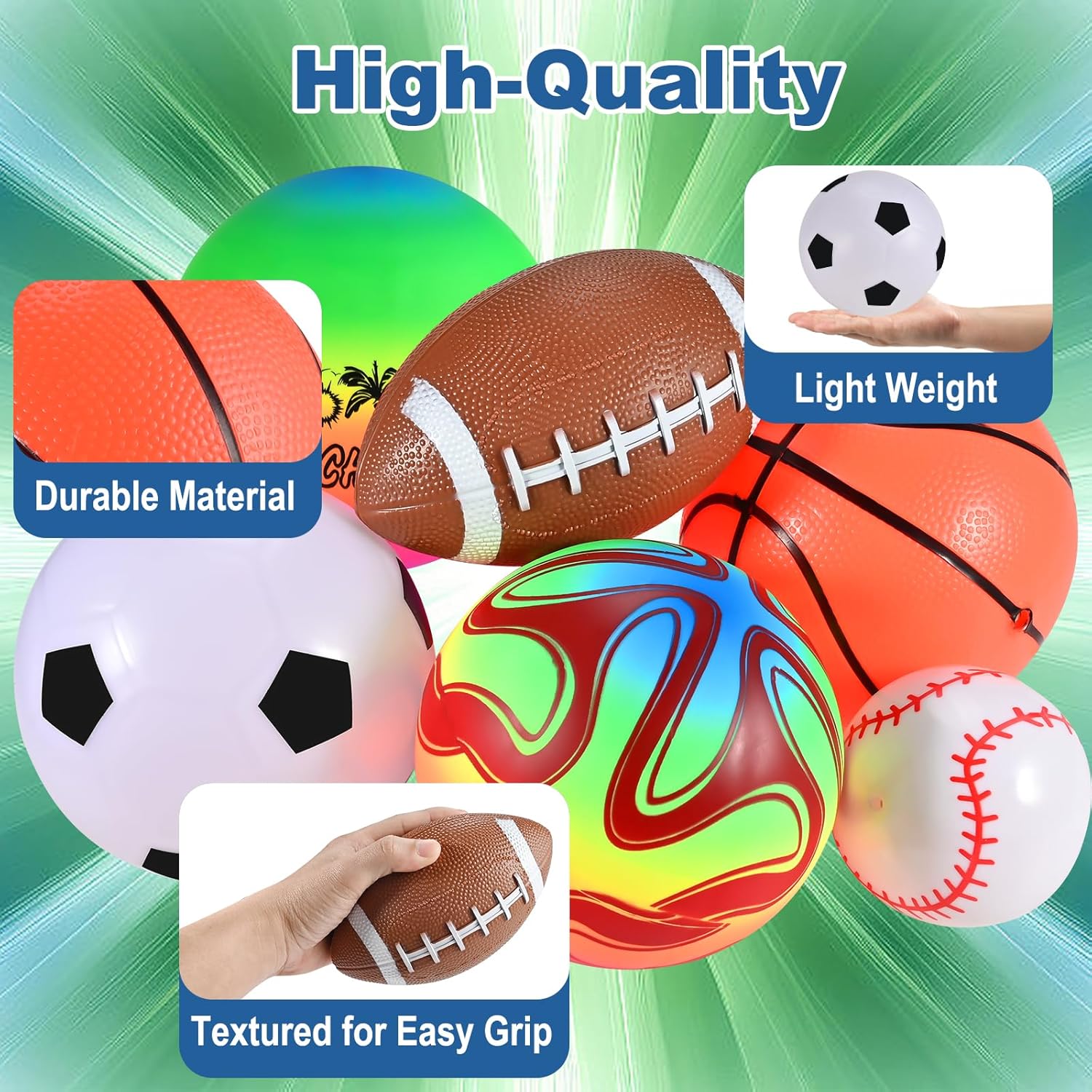 - 【For Indoor & Outdoor Use】–These outdoor sports balls are of moderate size, easy to grip, and very suitable for kids aged 3-7. Toddlers can use it in courtyards, lawns, playgrounds, beaches, and swimming pools.