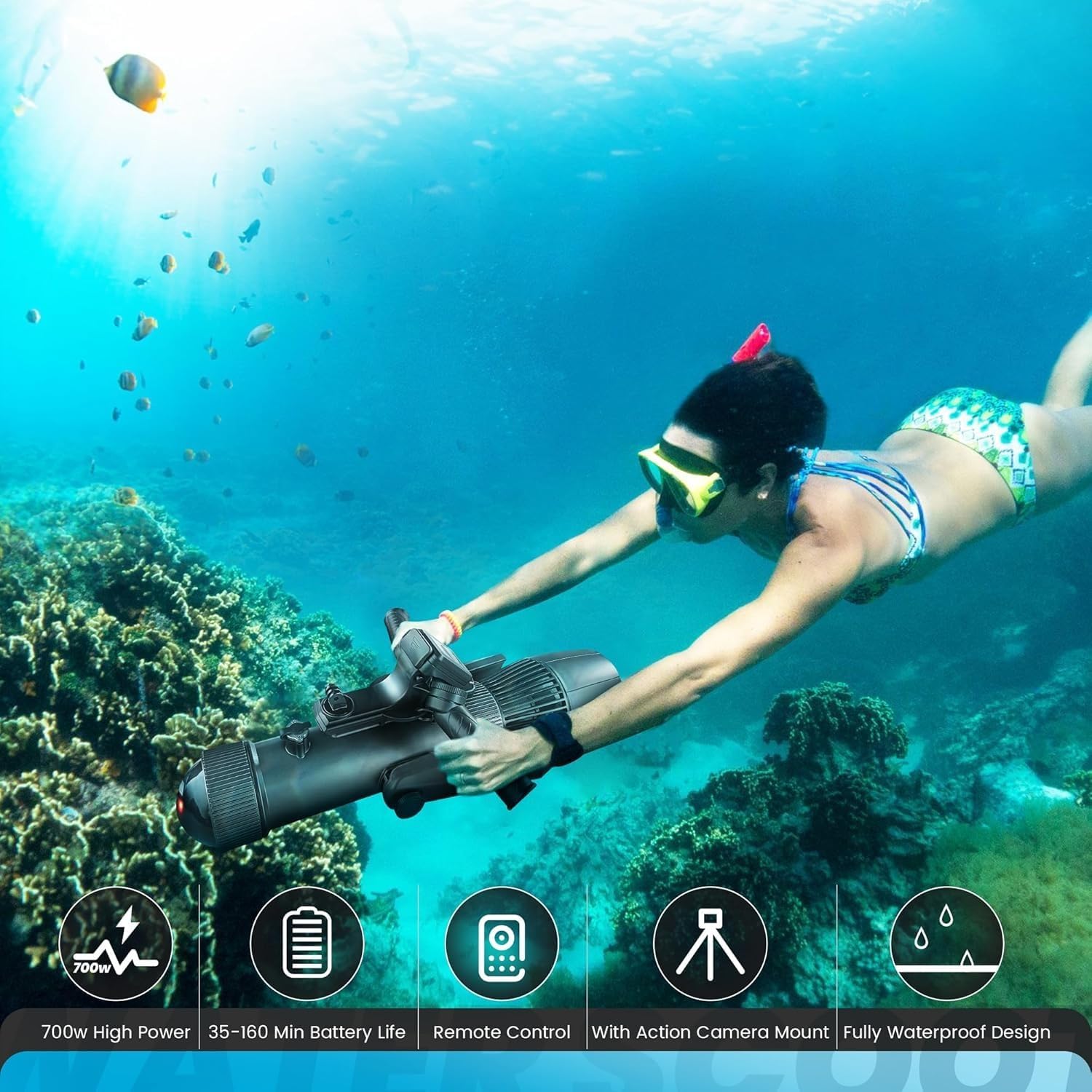 700W Electric Underwater Scooter, Thumb Controlling Sea Scooter for SUP Paddle Board, Suitable for Pool, Diving, and Snorkeling, Water Scooter for Adults and Kids (CM7-1 Pro)