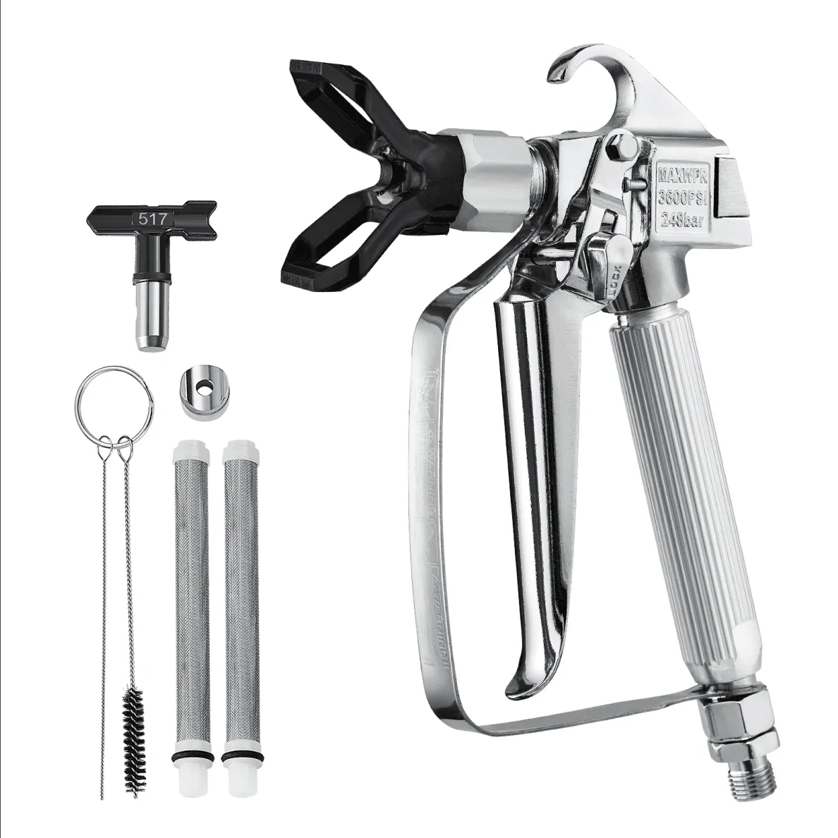 Airless Paint Spray Gun, 3600PSI High Pressure Airless Paint Sprayer Gun with 517 Tip, Swivel Joint Airless Spray Gun Kit with Filters, Cleaning Needle and Brush, for Airless Spraying Machine