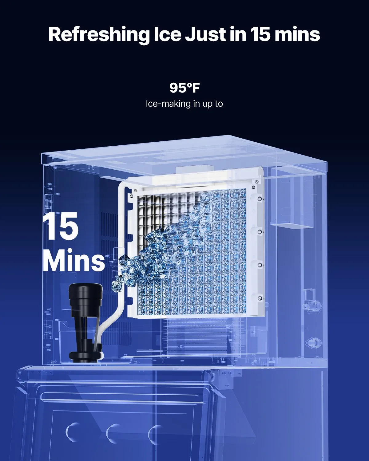 The ice maker is easy to install, and the gravity drainage design ensures quick and efficient water discharge.
