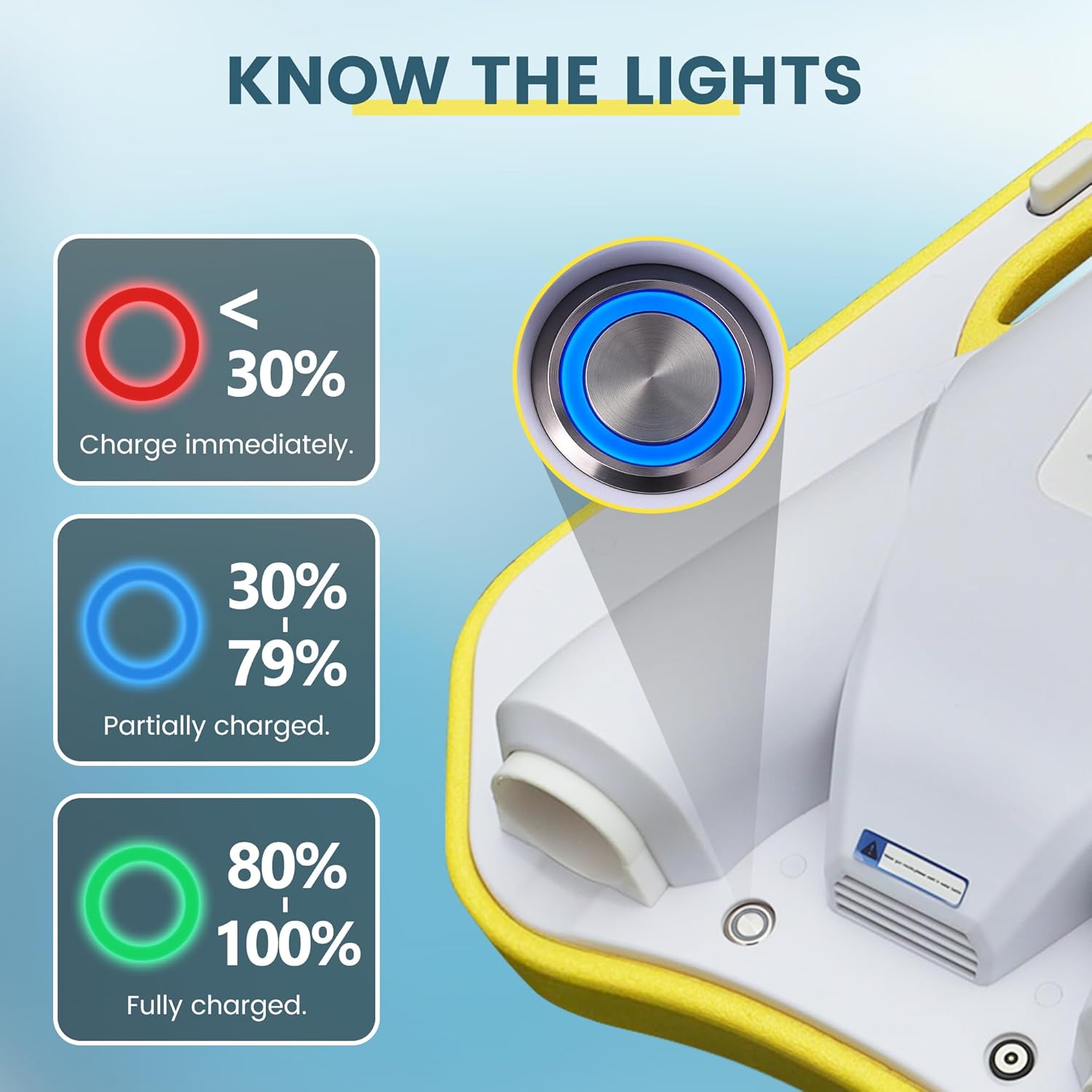 - 𝐒𝐞𝐚𝐥𝐞𝐝 𝐃𝐞𝐬𝐢𝐠𝐧 & 𝐄𝐱𝐭𝐞𝐧𝐝𝐞𝐝 𝐏𝐥𝐚𝐲𝐭𝐢𝐦𝐞 The fully sealed battery compartment is built for poolside use. Powered by a high-capacity battery, it provides 30–45 minutes of continuous fun on a single charge—no interruptions, just enjoyment