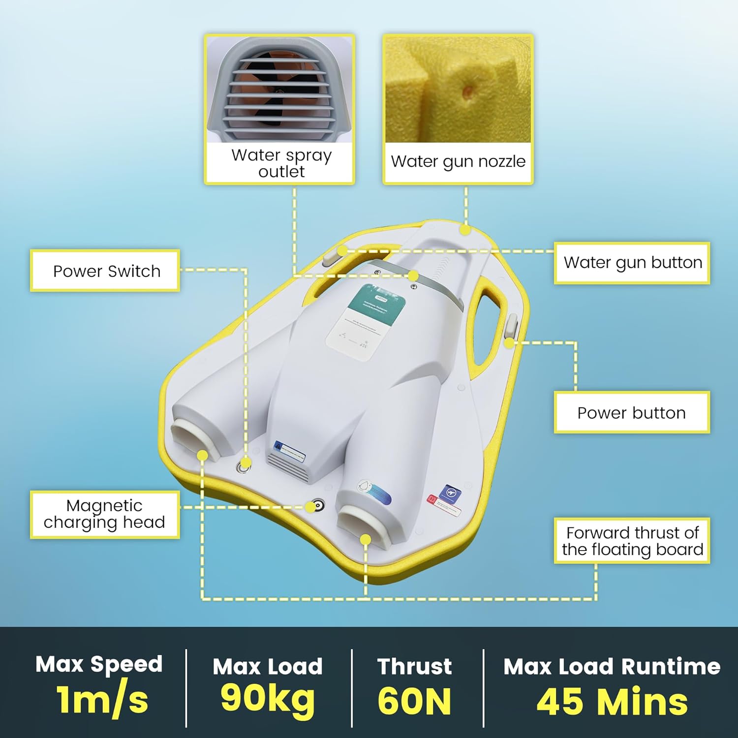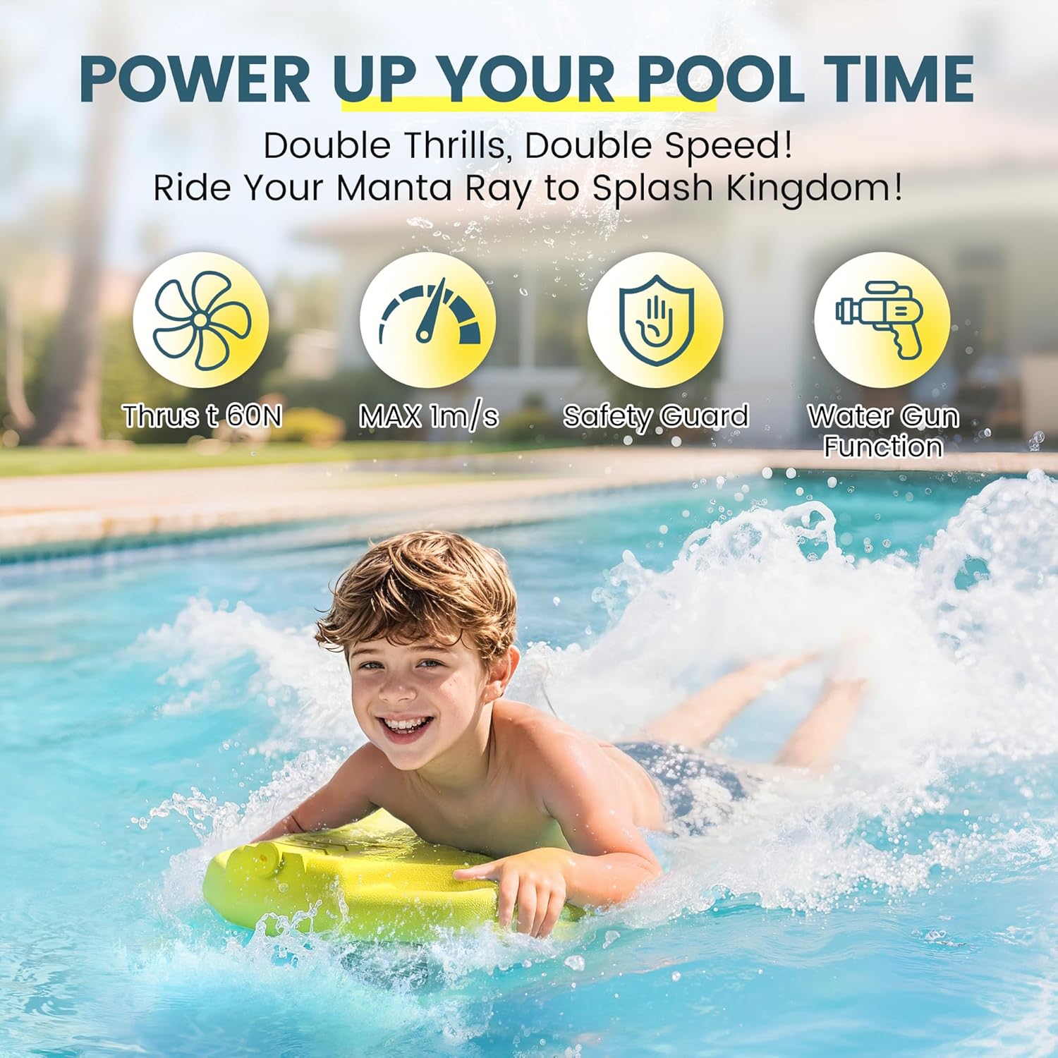 Electric Swimming Kickboard for Kids & Adults – Motorized Swim Trainer with Water Gun, 60N Thrust, 198 lbs Buoyancy, 24V Rechargeable Battery – Pool & Water Sports Propulsion Board