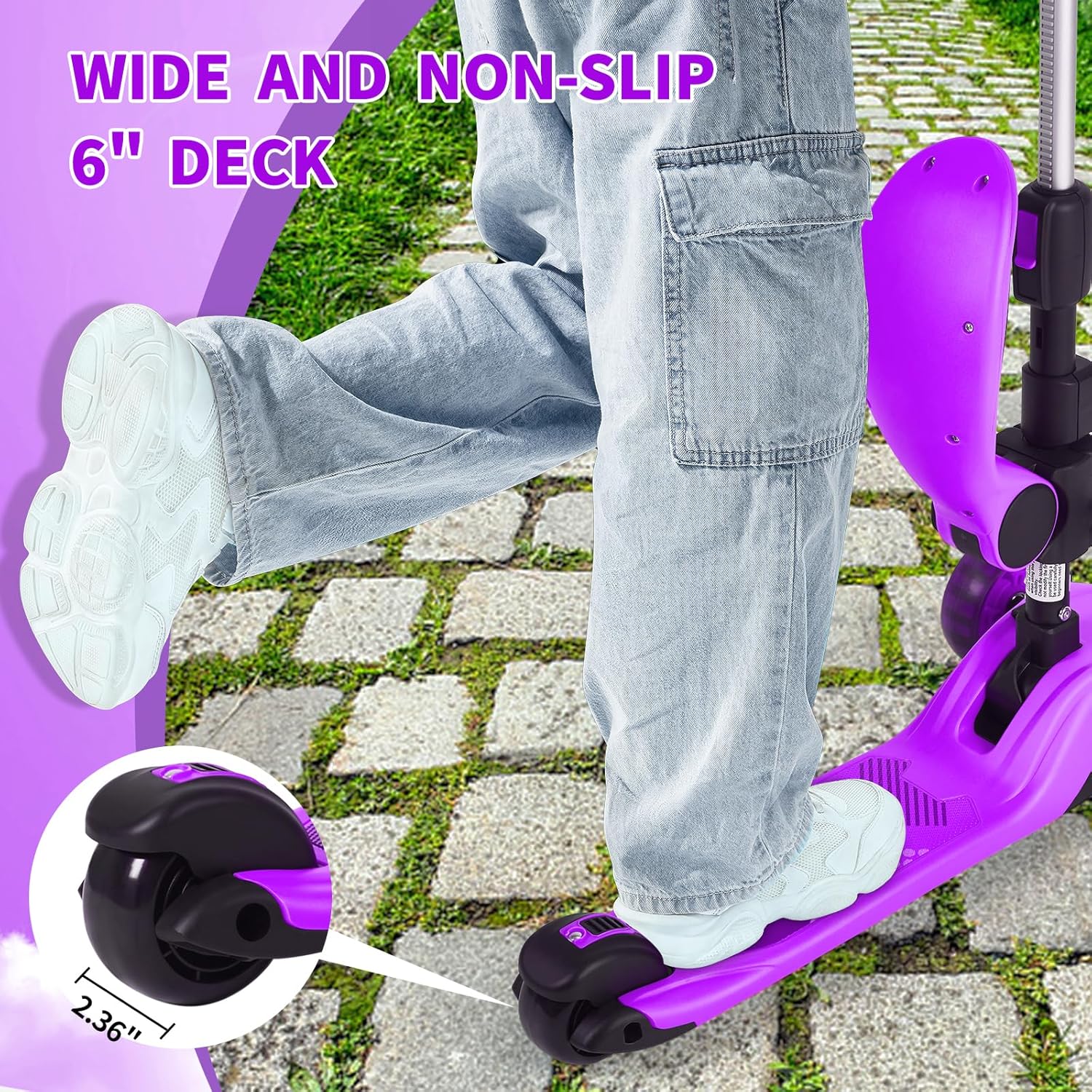 - RELIABLE DETAILS: This toddler scooter is designed with heart. Feel it when you unbox it. HANDLE: Sawtooth thickening design, wear-resistant, non-slip, shock-absorbing, for a firm and comfortable grip. DECK: EXTRA WIDE and tough.