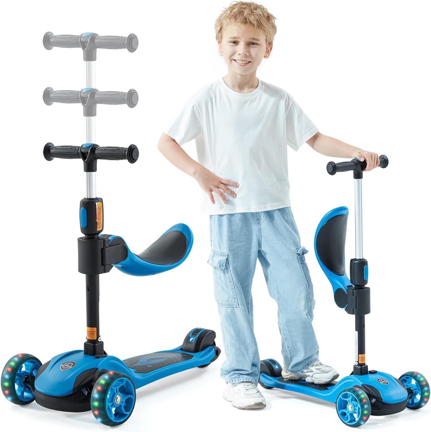 GLAMUP Kids Scooter, 2-in-1 Folding Kick Scooters, Adjustable Height, Safety Lock, 3 Wheel Kick Scooter for Boys and Girls Ages 3-14