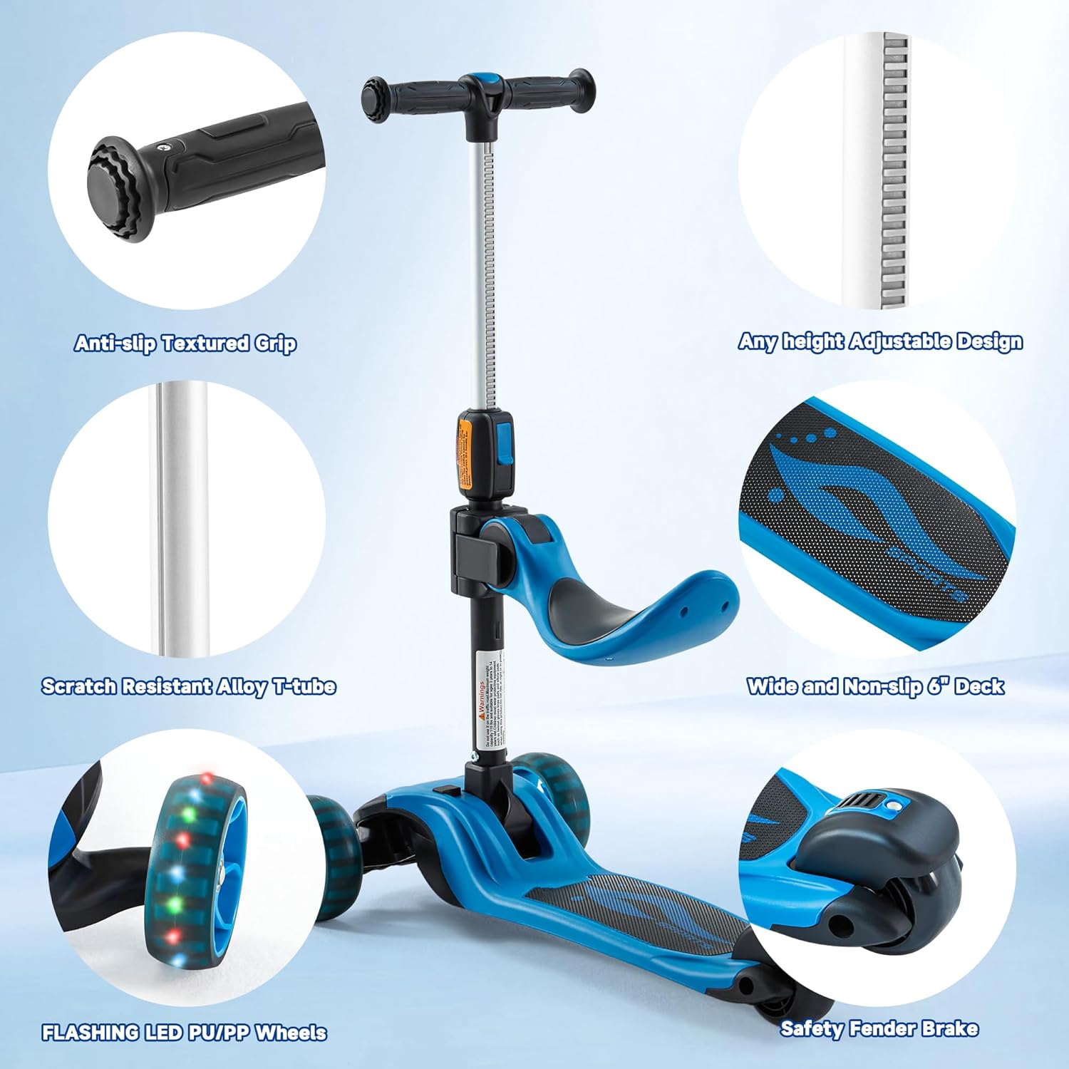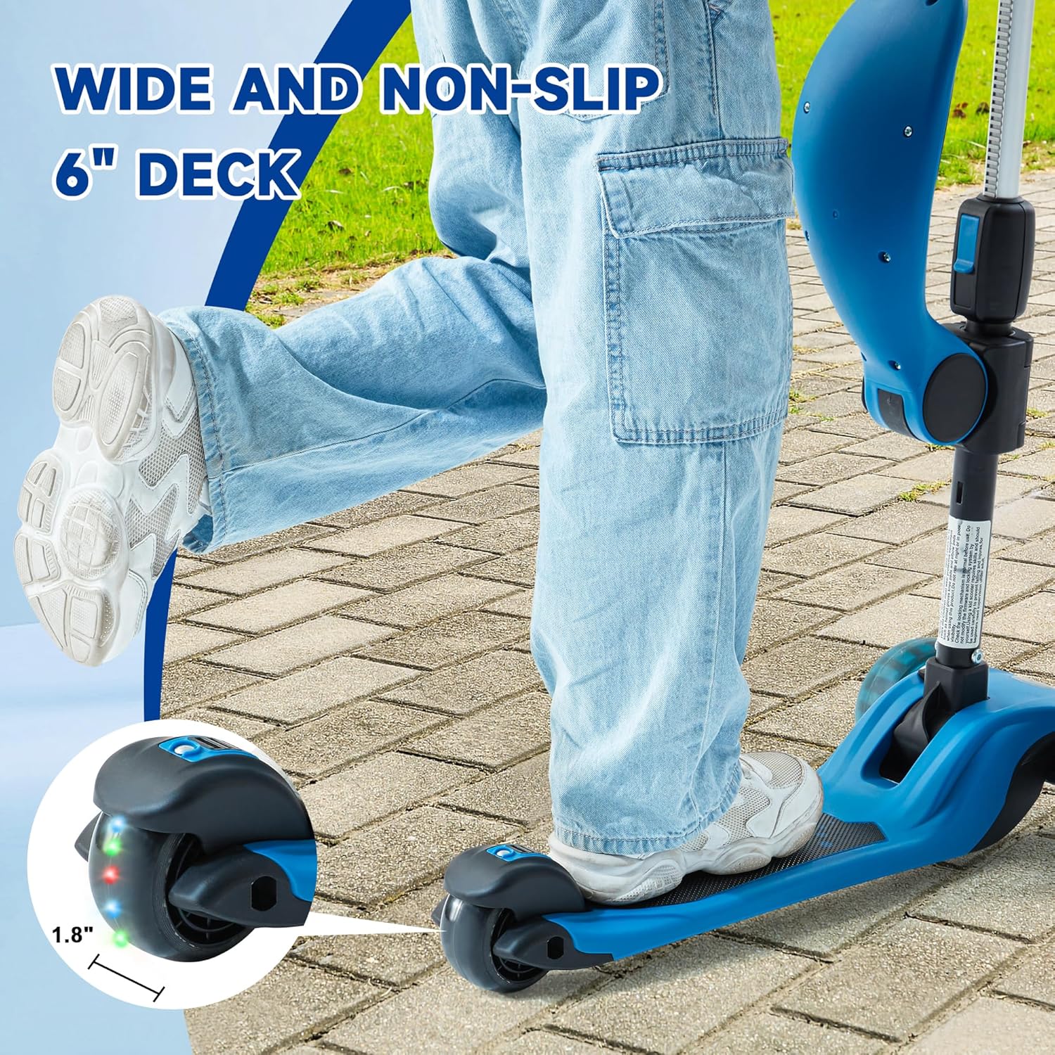- RELIABLE DETAILS: This toddler scooter is designed with heart. Feel it when you unbox it. HANDLE: Sawtooth thickening design, wear-resistant, non-slip, shock-absorbing, for a firm and comfortable grip. DECK: EXTRA WIDE and tough.