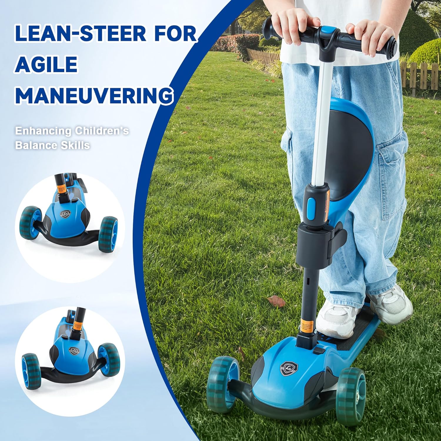 - SPORTS ENLIGHTENMENT: Kids scooter for boys girls ages 3-14 uses ski/surf-like LEAN-TO-STEER tech. A great sports enlightenment toy helps kids strengthen their body, master balance and coordination. BEARINGS made of selected materials ensure smooth, quiet, durable steering, easily standing up to the elements and various roads.