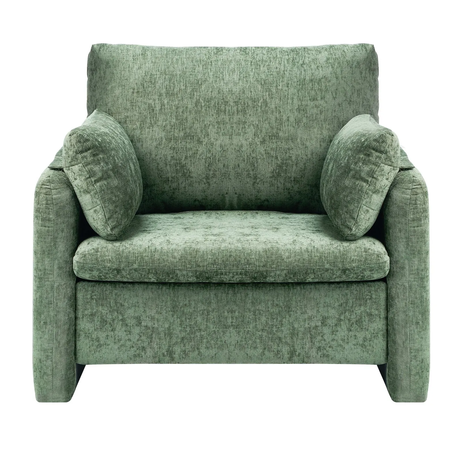 The spacious modern upholstered chair complements any living room decor. The extra-deep chair comes with comfortable armrests and a beautiful backrest, creating a comfortable seating experience for you. It can also be used to create a cozy reading nook in the bedroom.