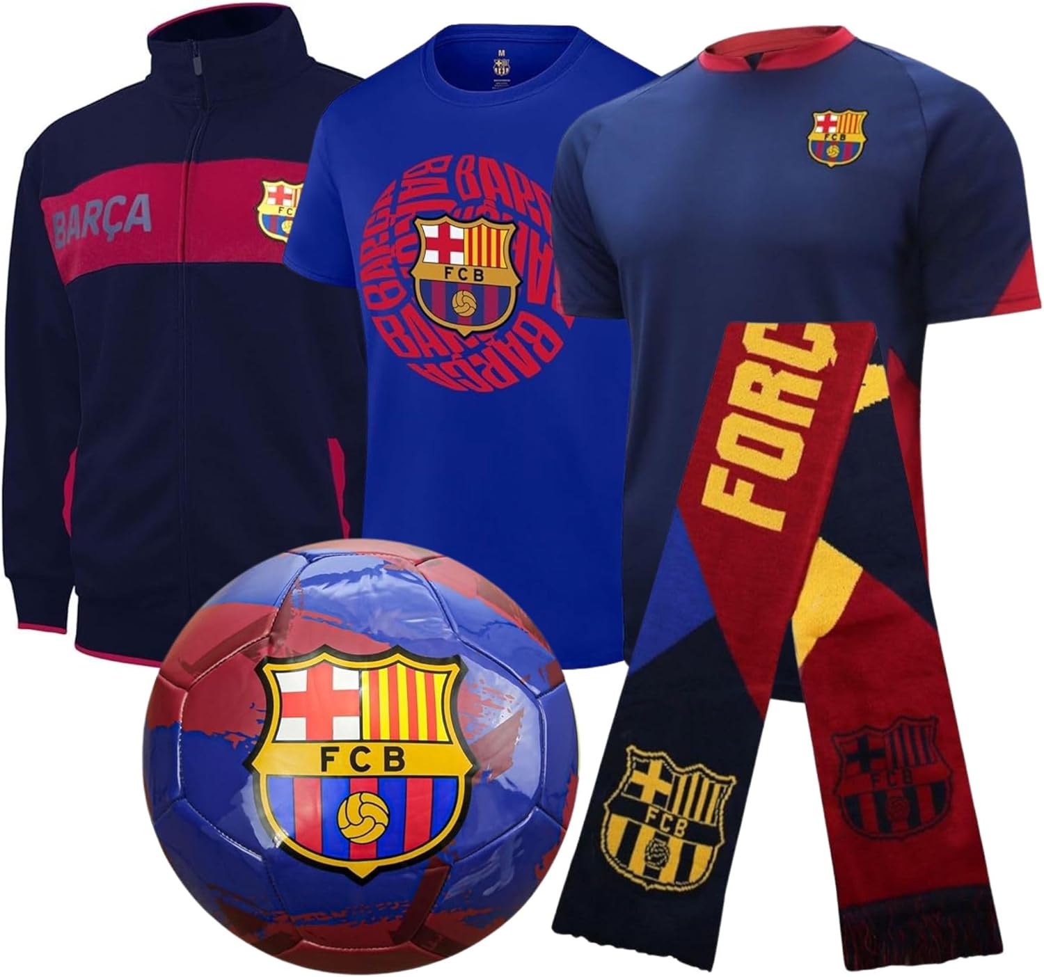 - Complete 5-Piece Set - All-in-One Fan Bundle - Includes a cotton t-shirt, polyester match jersey, track jacket, iconic woven scarf, and a ball. Each item is thoughtfully selected to deliver a true soccer fan gear bundle that brings comfort, style, and team spirit together.