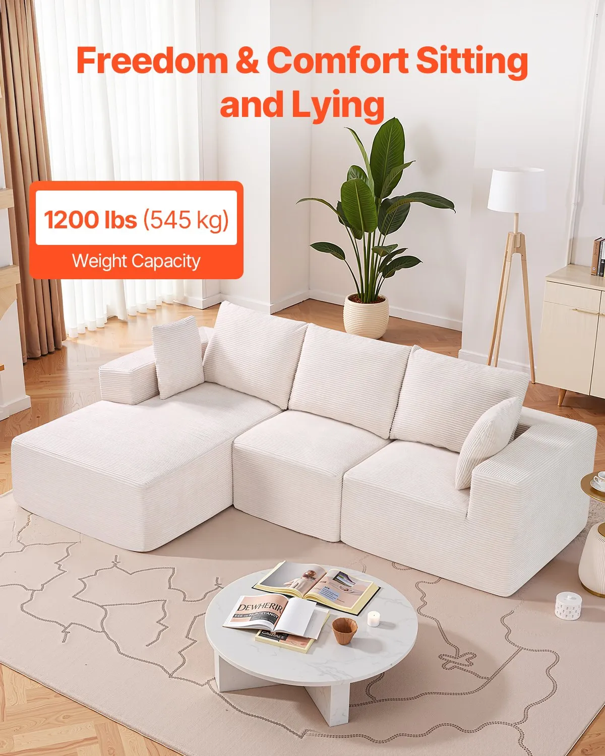 Designed to fit your home and style, this versatile modular sectional sofa offers comfort and a modern look. Made with high-elastic foam and spring support, it’s both durable and comfy. The breathable, easy-to-care-for corduroy fabric keeps your living space stylish and low-maintenance.