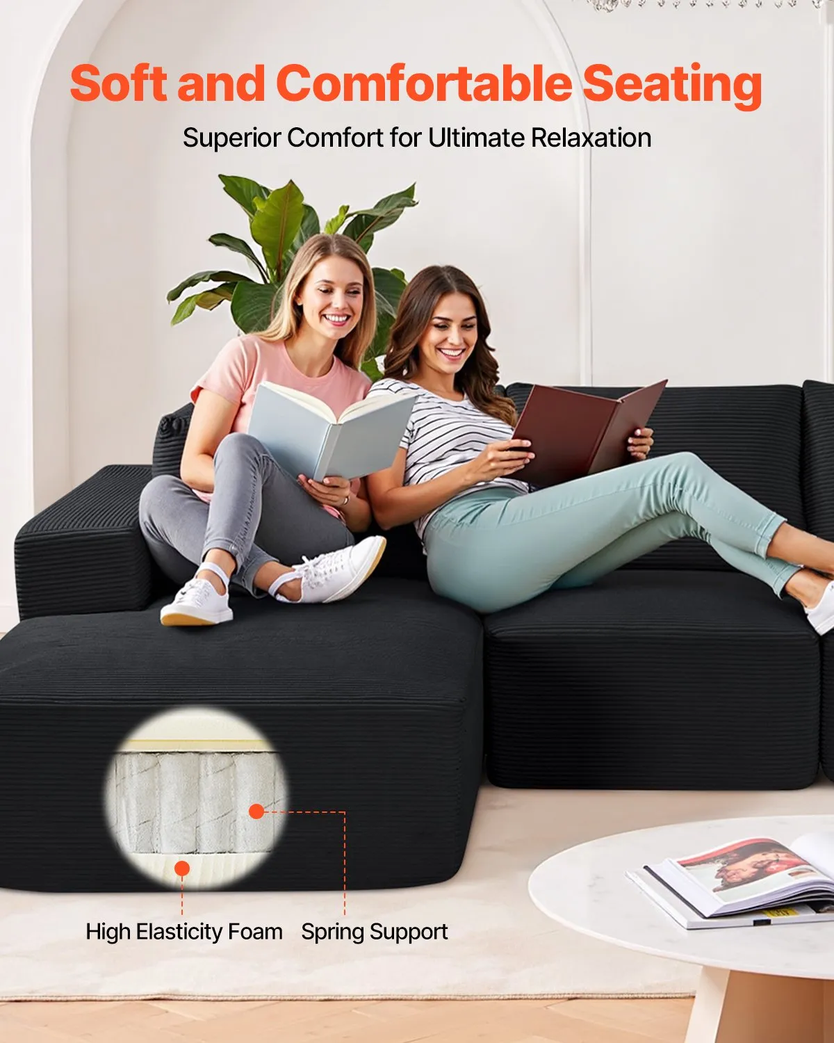 Designed to fit your home and style, this versatile modular sectional sofa offers comfort and a modern look. Made with high-elastic foam and spring support, it’s both durable and comfy. The breathable, easy-to-care-for corduroy fabric keeps your living space stylish and low-maintenance.