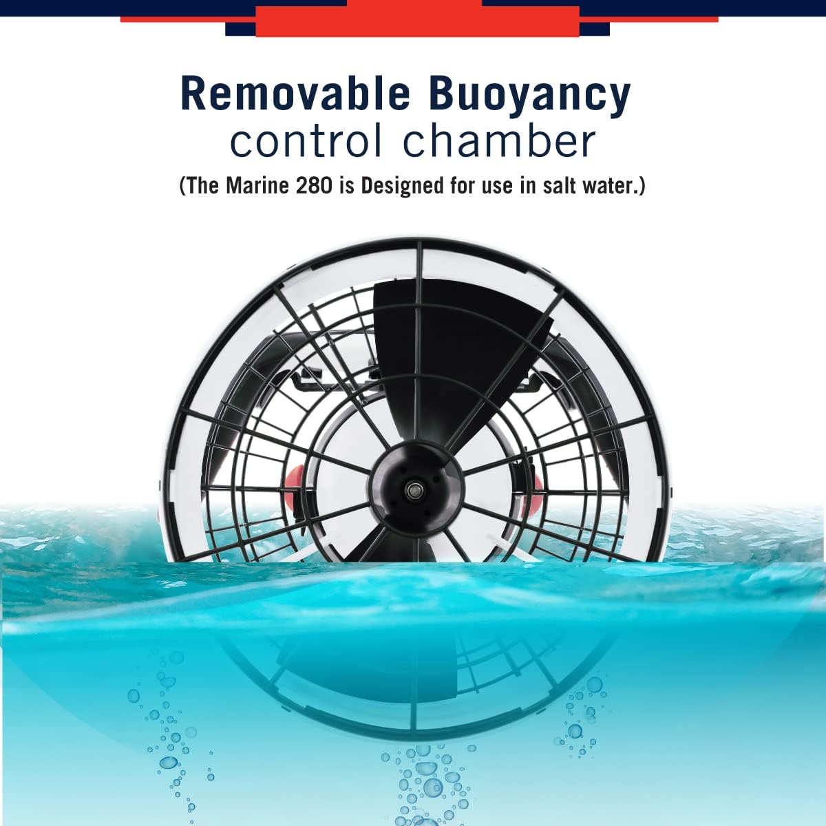 - Powerful motor propels scuba divers, snorkelers and swimmers up to 2 hours on single charge with speeds up to 2.5 mph