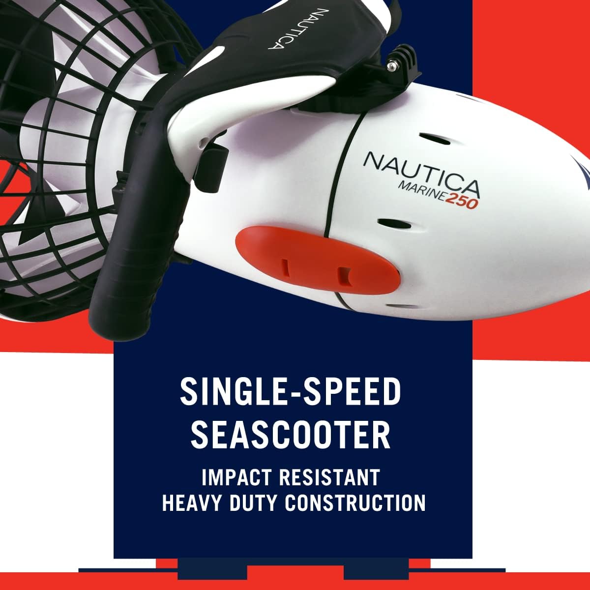 - The Nautica 250 seascooter features a high-performance motor that delivers impressive speed and torque for an exciting underwater experience