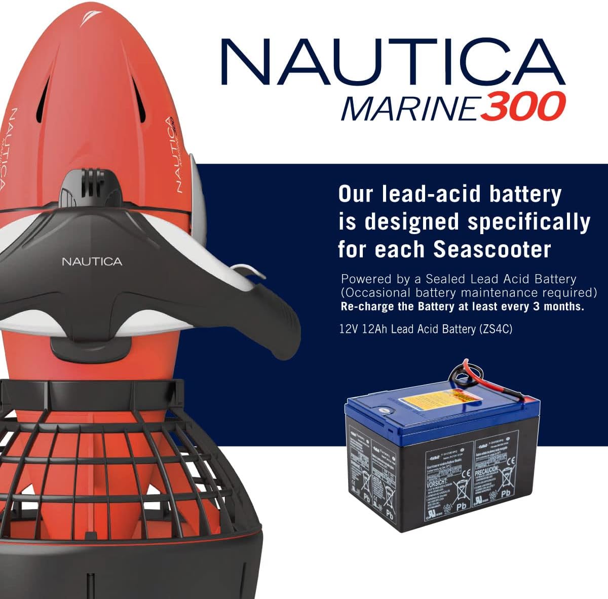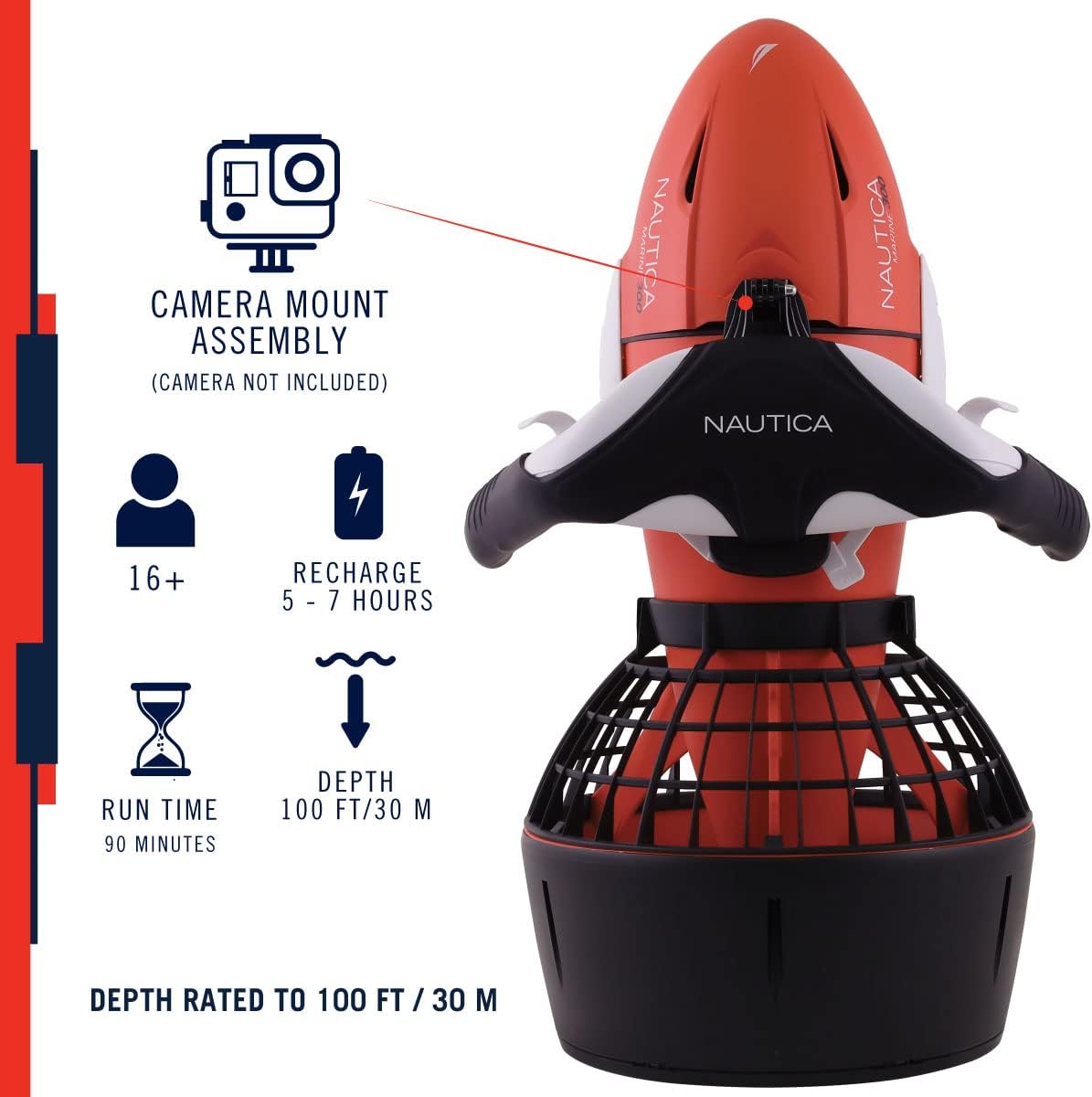 Nautica Marine 300 Underwater Seascooter, Scuba Diving, Snorkeling for Ocean or Pool to Maximize Your Underwater Dive Adventure, Action Camera Compatible