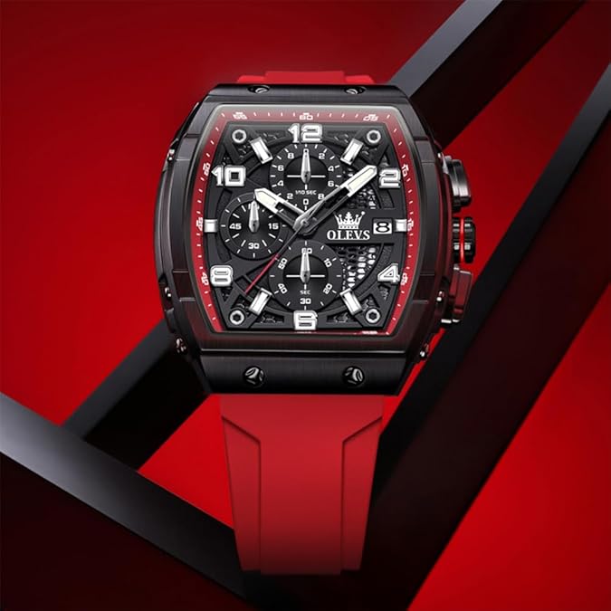 - ⌚ OLEVS Watches Chronograph : Multi-function Original Movement ,3 functional little sub-dials for chronograph minute,cPush/pull crown; Uni-directional stainless steel bezel with black top bezel ring; Functional Subdials: Moon phase dial,60min, 60sec, 24hr; Super Luminous : Luminous Hands & Calibration , is convenient to read the time in the dark(Luminous function needs to be activated by light)