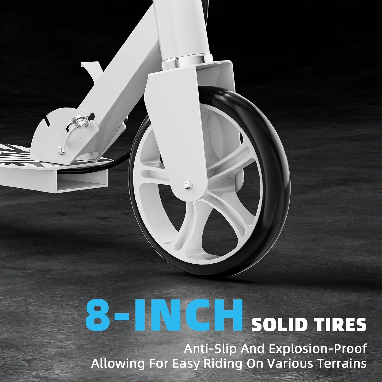 - Smooth Ride on Any Terrain: 8-inch wheels with advanced suspension absorb bumps for comfort. Features a 4-inch wide anti-slip deck and ultra-low 4-inch height—secure footing and effortless pushing without knee strain, even on uneven surfaces