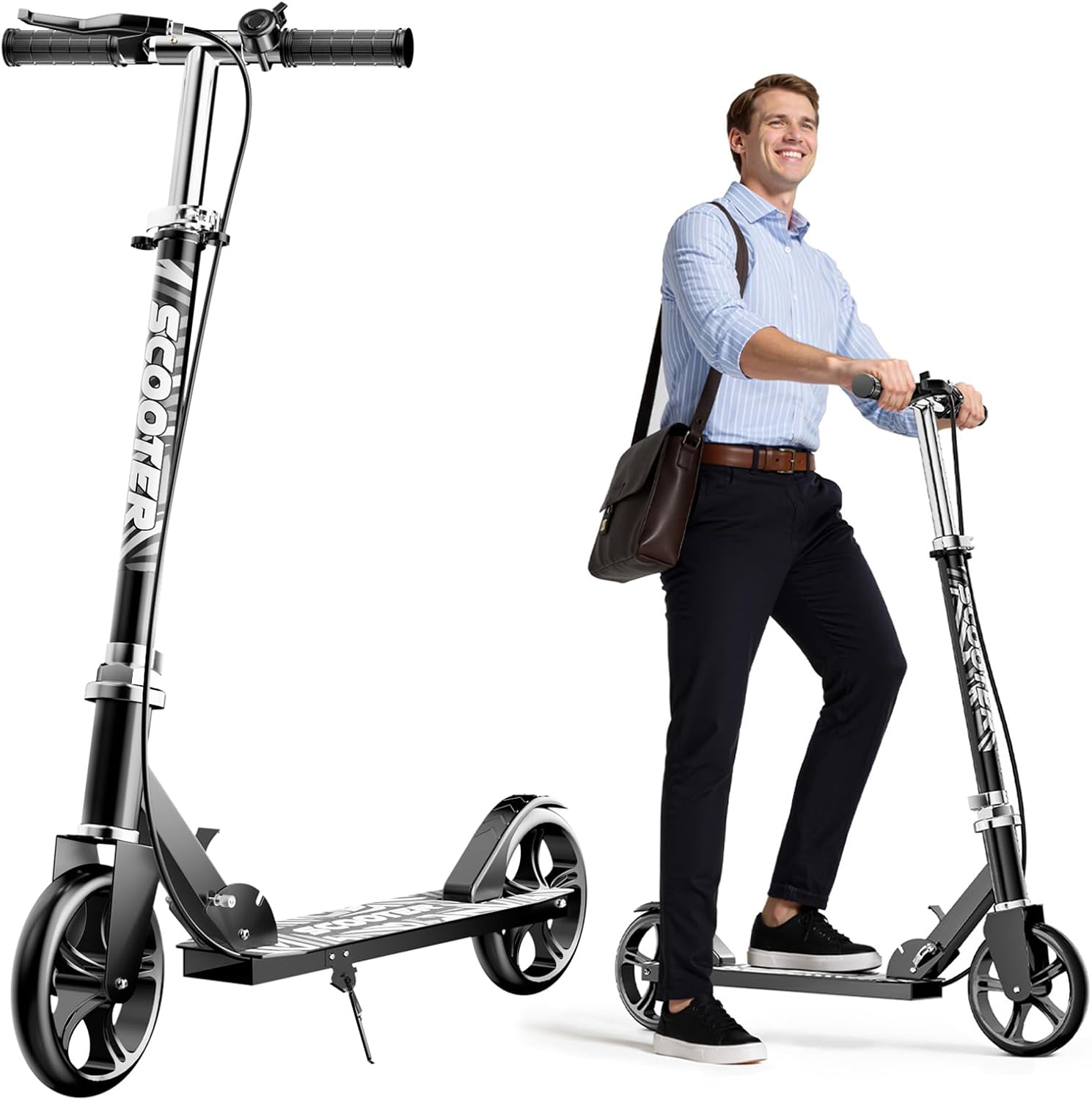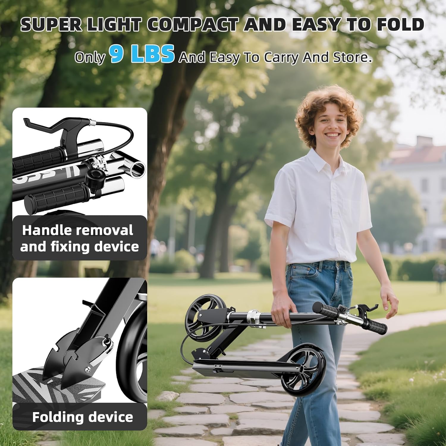 - Space-Saving & Portable Design: Quick-folding mechanism and adjustable handlebars allow compact storage in seconds. Perfect for commuters, students, or travel—lightweight yet sturdy for children and adults alike.