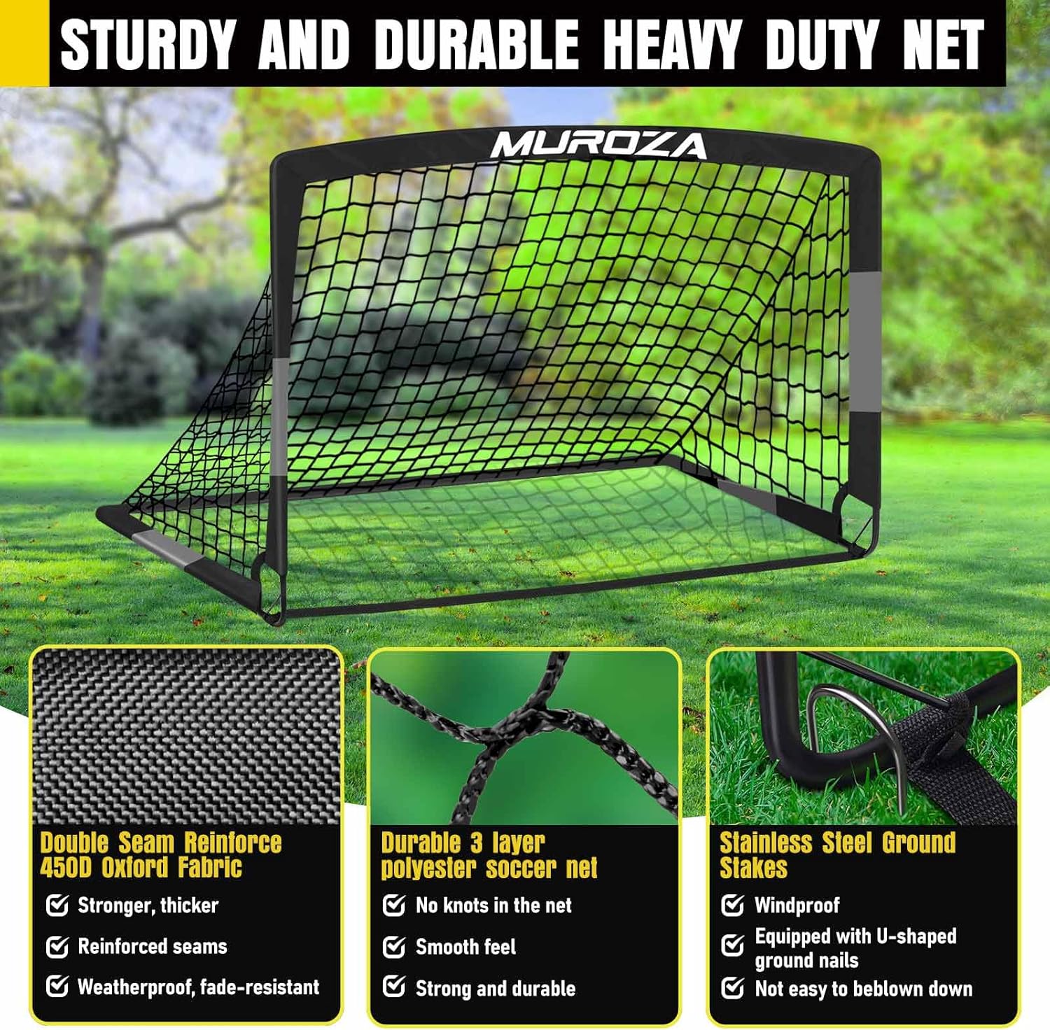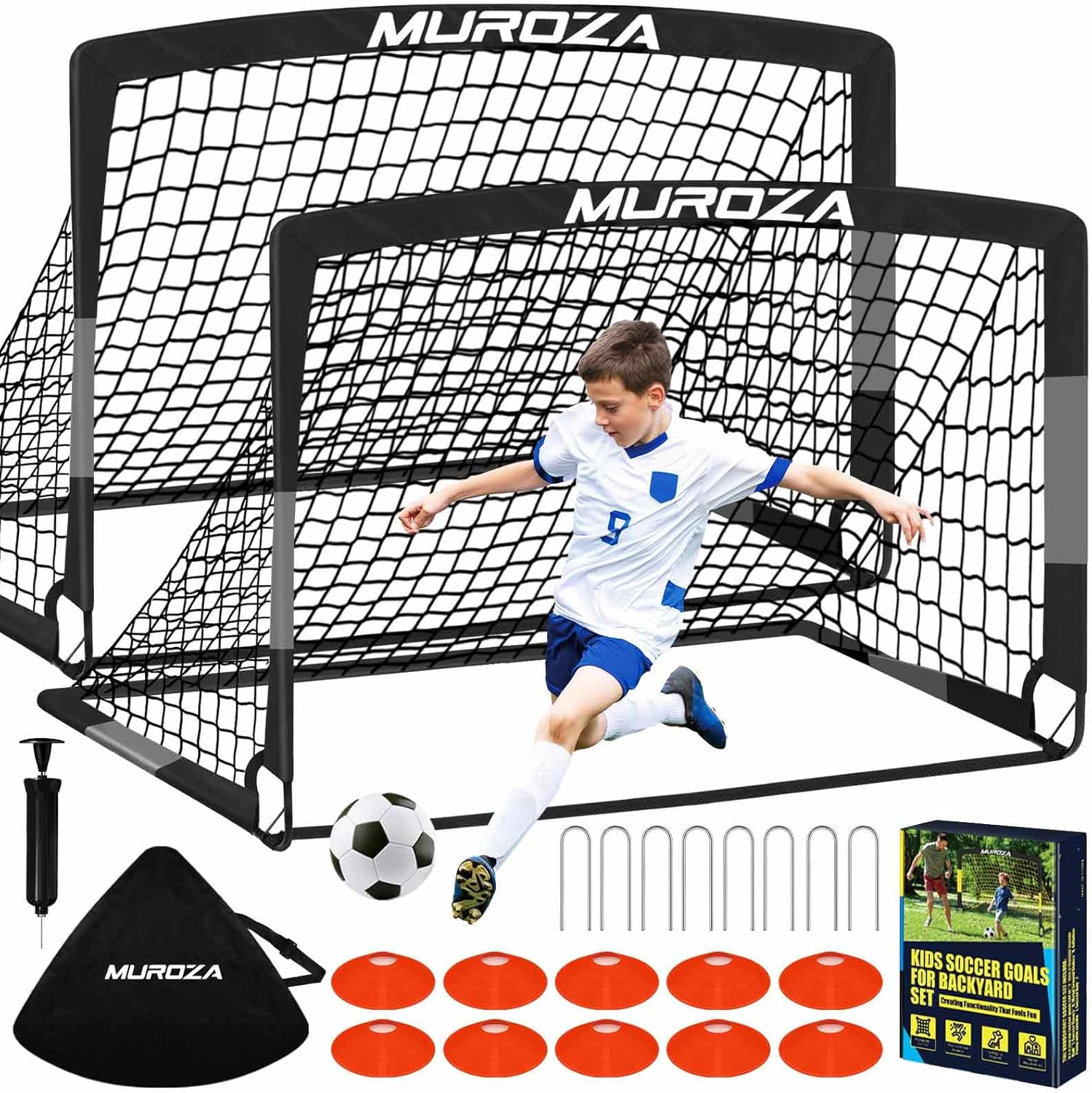 - Backyard Soccer Goal: Kids will go crazy for this soccer goal set! Complete with all necessary accessories, soccer goal set transforms any backyard into a personal soccer net field. Encourage your kids to step away from screens and engage in hours of healthy outdoor play. Perfect for skill training or fun games with friends, soccer training equipment also promotes valuable parent-child interaction and strengthens family bonds.