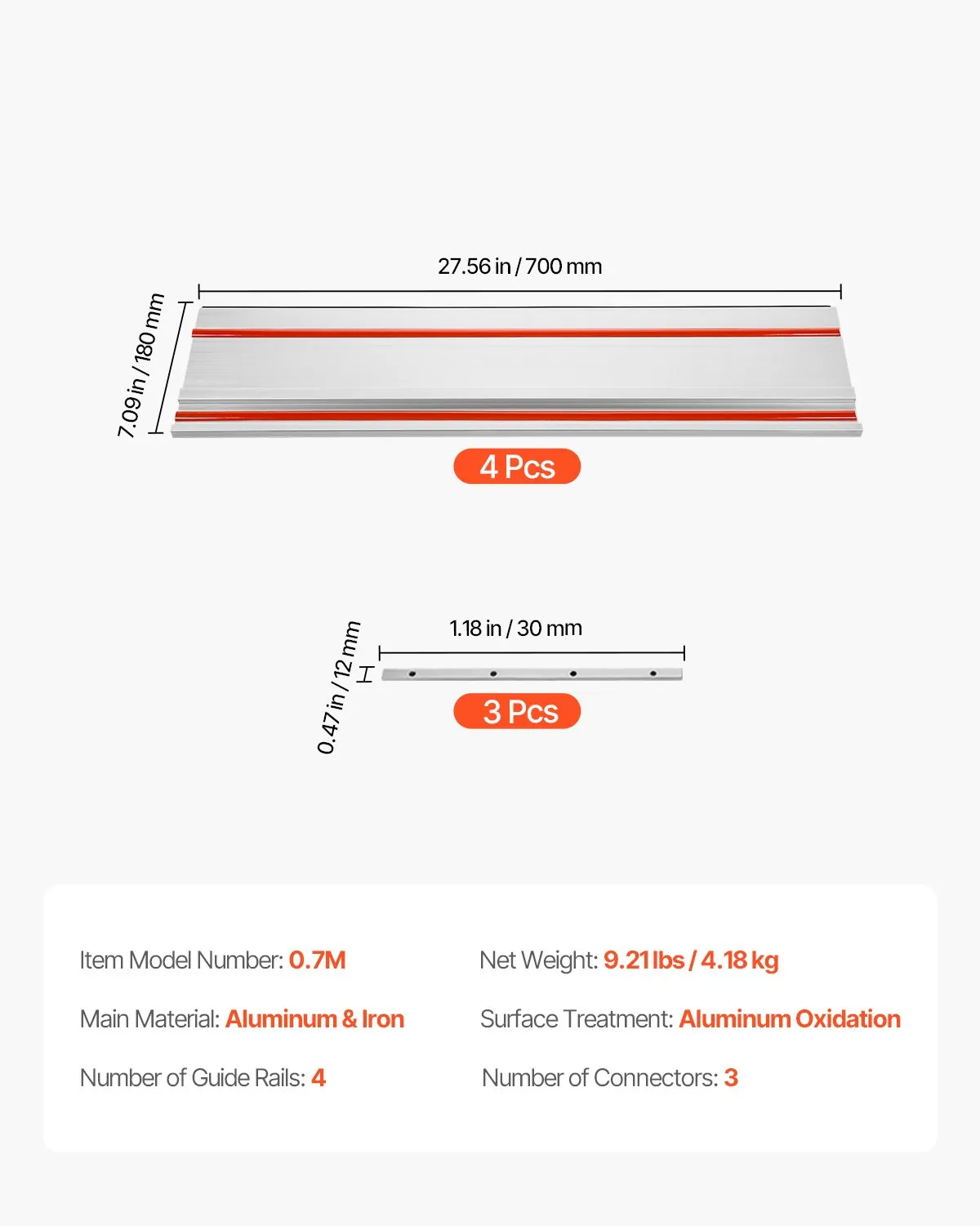 VEVOR Track Saw Guide Rail 110 in 3 Connectors Fit Makita Festool Track Saws